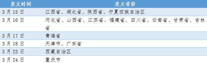 據(jù)不完全統(tǒng)計,自《工作方案》3月14日發(fā)布至3月底,江西、湖北、陜西、寧夏、河北、山西、江蘇、福建、四川、云南、甘肅、吉林、青海、天津、廣東、西藏、重慶等17個省份轉發(fā)。